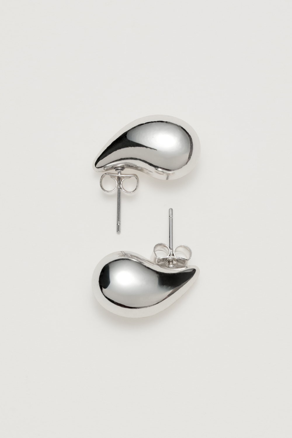 Pienet, sileät, pisaranmuotoiset metallikorvakorut. Pelkistetyt korvakorut, joiden tyylikäs muotoilu sopii kaikkiin tilaisuuksiin.