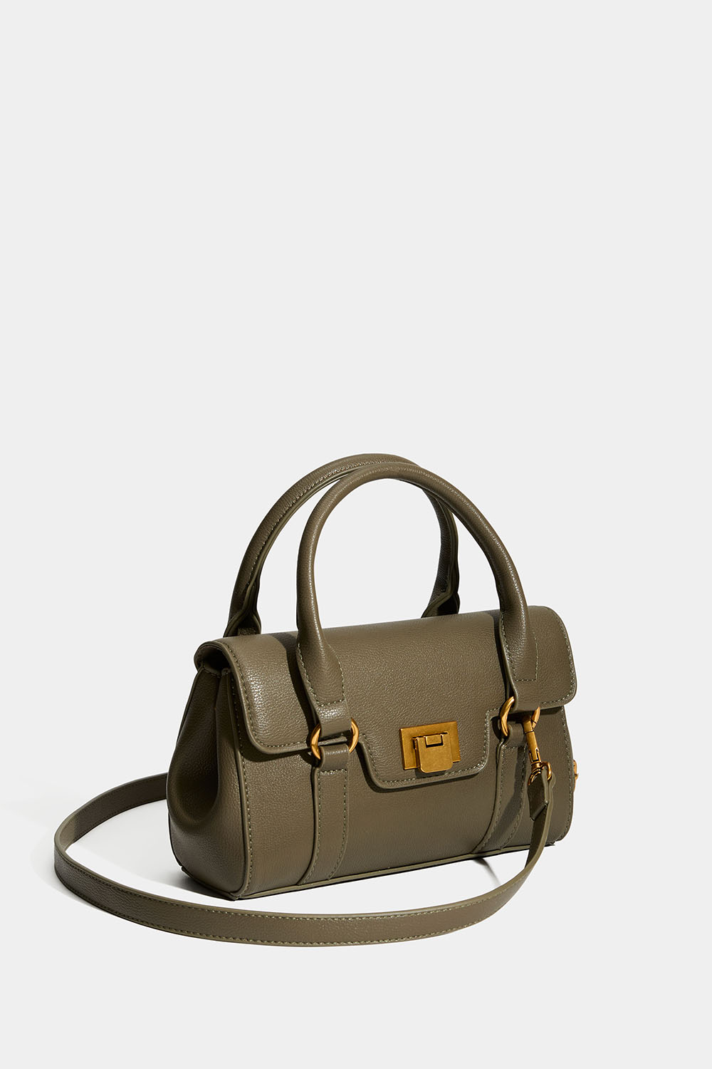 Pieni vihreä käsilaukku kaksinkertaisella kahvalla