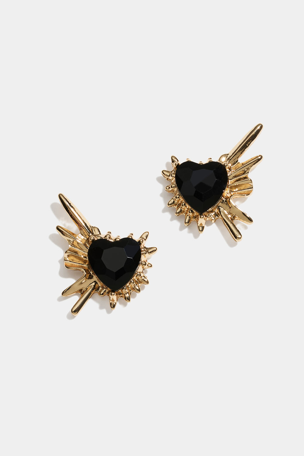 Nappikorvikset piikikkäillä yksityiskohdilla ja mustilla sydämenmuotoisilla lasikivillä.