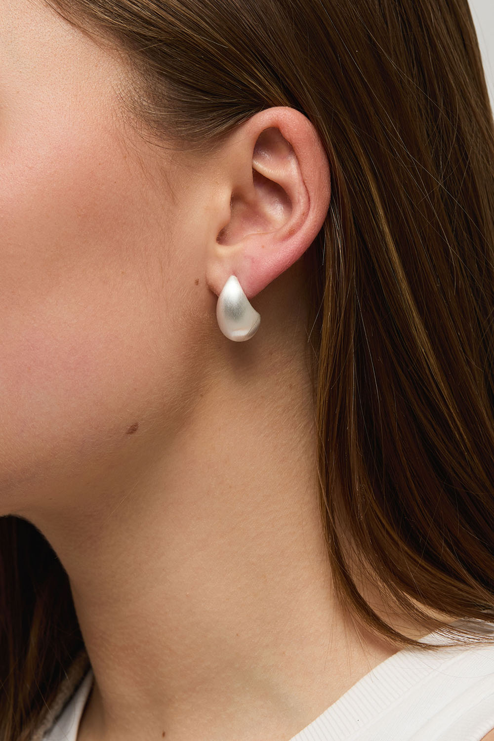 Pisaranmuotoiset korvakorut, joissa harjattu pinta
