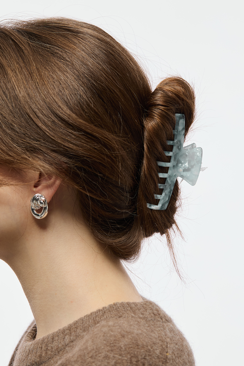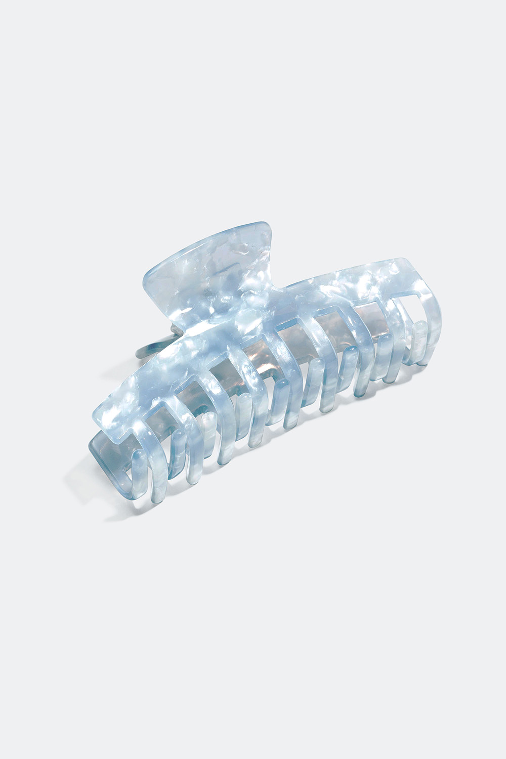Pitkänomainen hiussolki, jossa on nelikulmainen muoto ja marmoroitu kuvio. Täydellinen hiusasuste sinulle, joka haluat kiinnittää paljon hiuksia joko puolittaisessa tai koko hiusten kampauksessa.