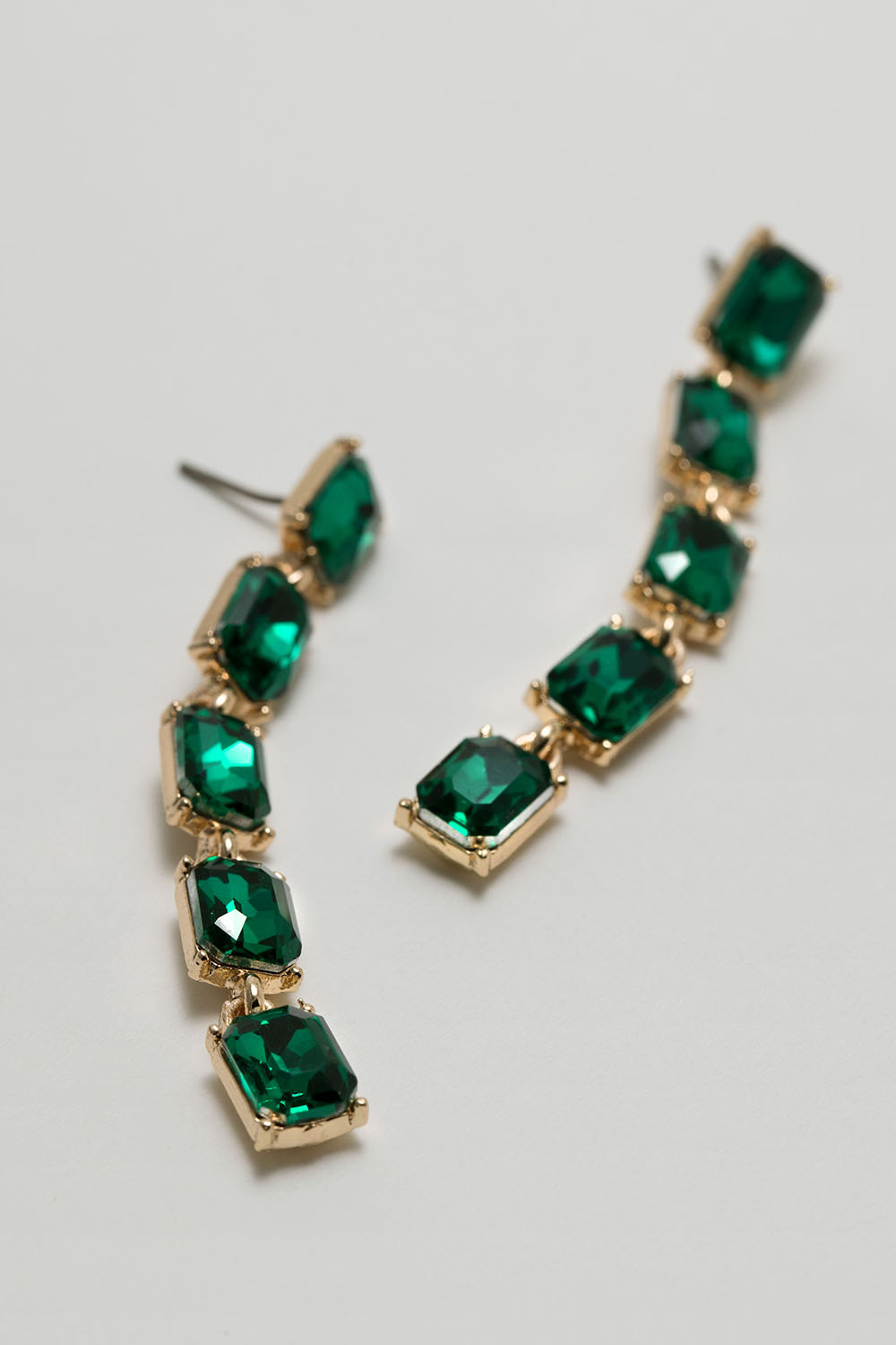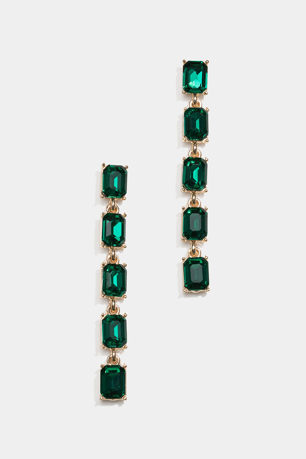 Pitkät kullanväriset korvakorut, joissa vihreitä lasikiviä ryhmässä Korut / Korvakorut / Strassikorvakorut @ Glitter (253007747502)