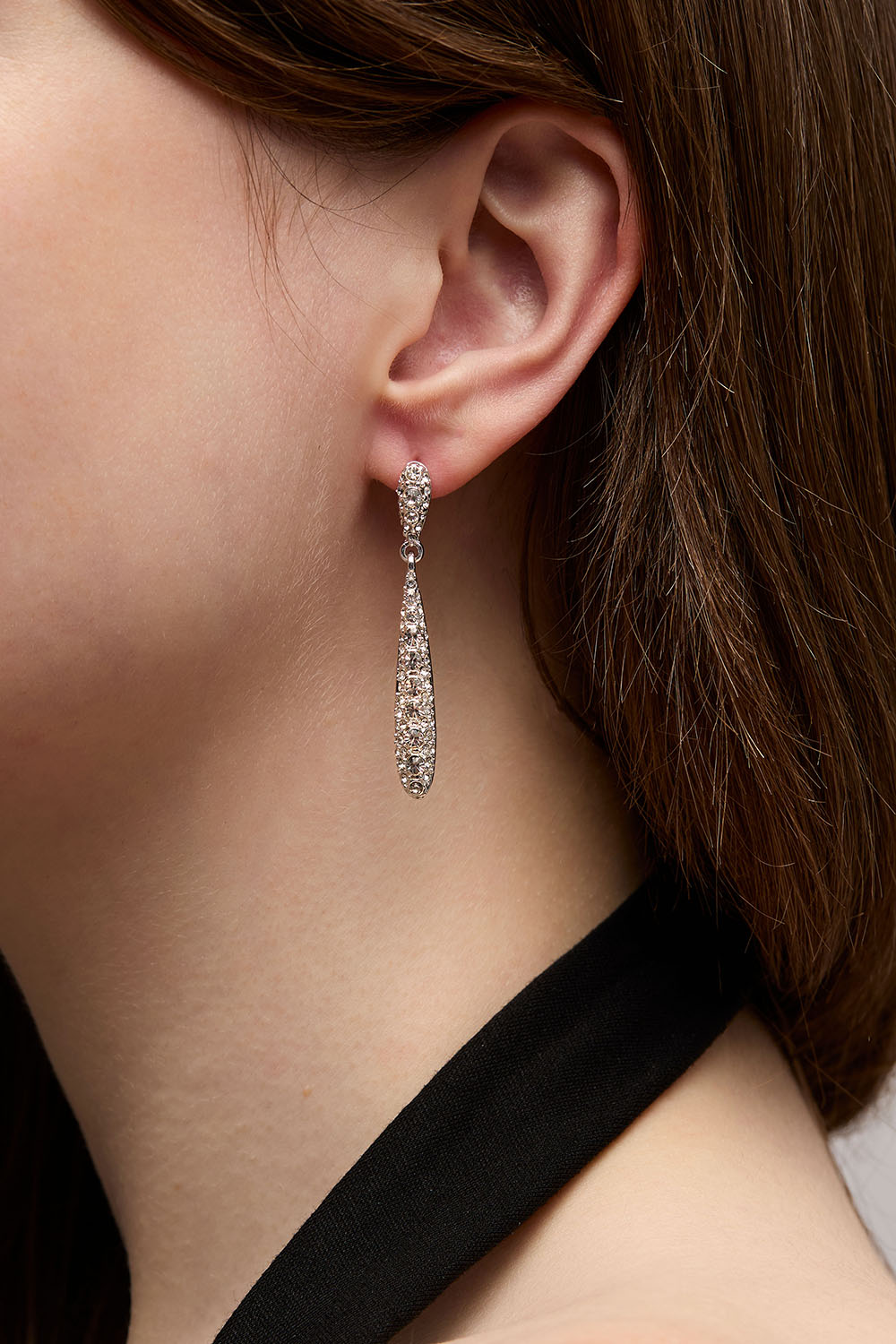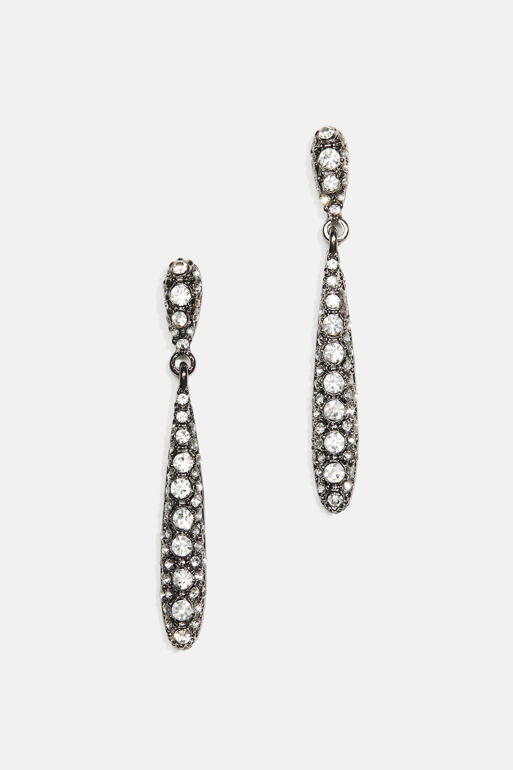 Pitkät tummanharmaat pisarakorvakorut, joissa on strasseja ryhmässä Korut / Korvakorut / Strassikorvakorut @ Glitter (253010090200)