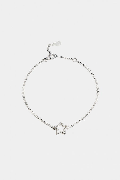 Rannekoru aitoa hopeaa, jossa on tähti.