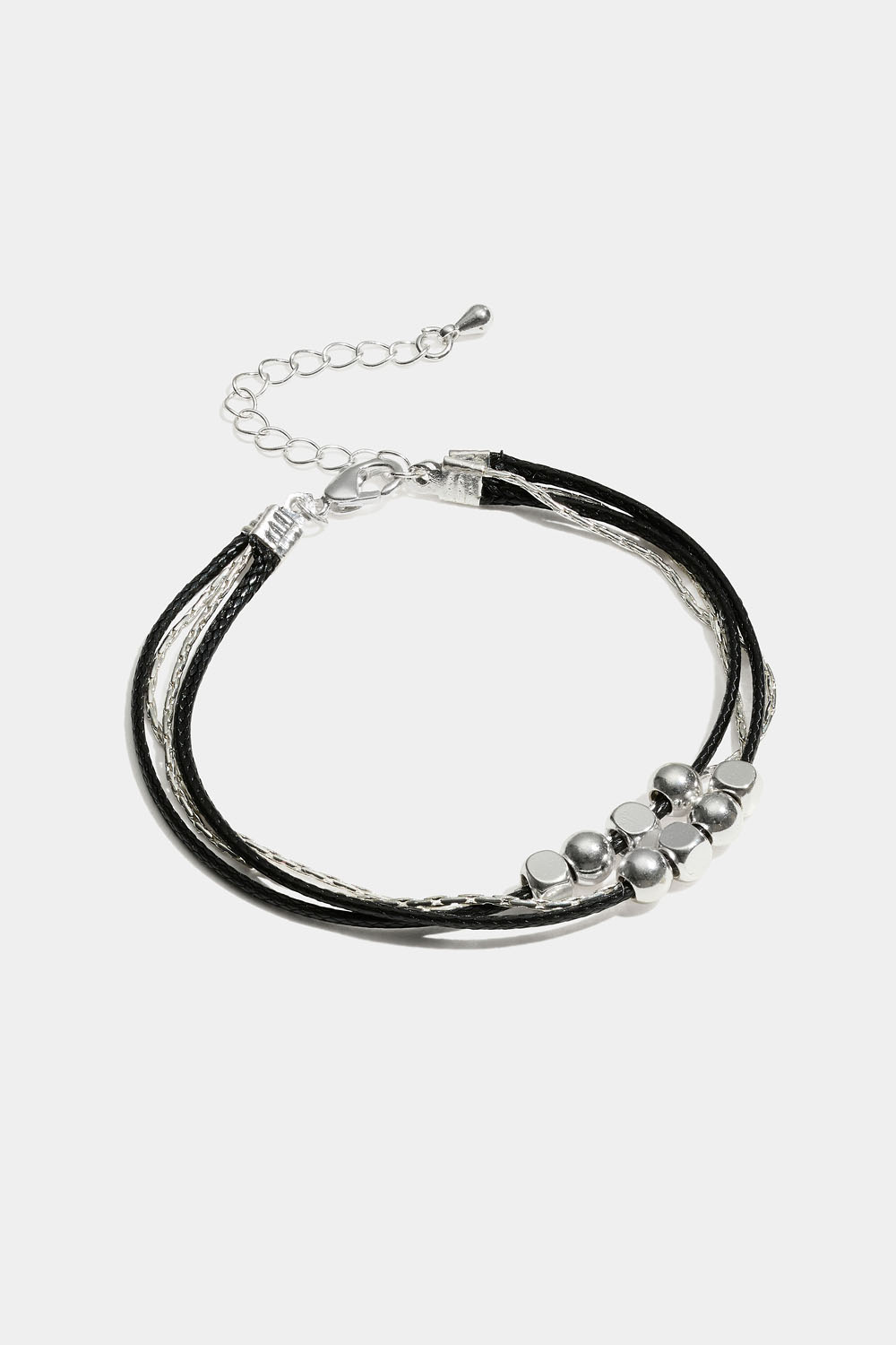 Rannekoru, jossa ketju, nyöri ja hopeahelmiä ryhmässä Korut / Rannekorut @ Glitter (251001599002)