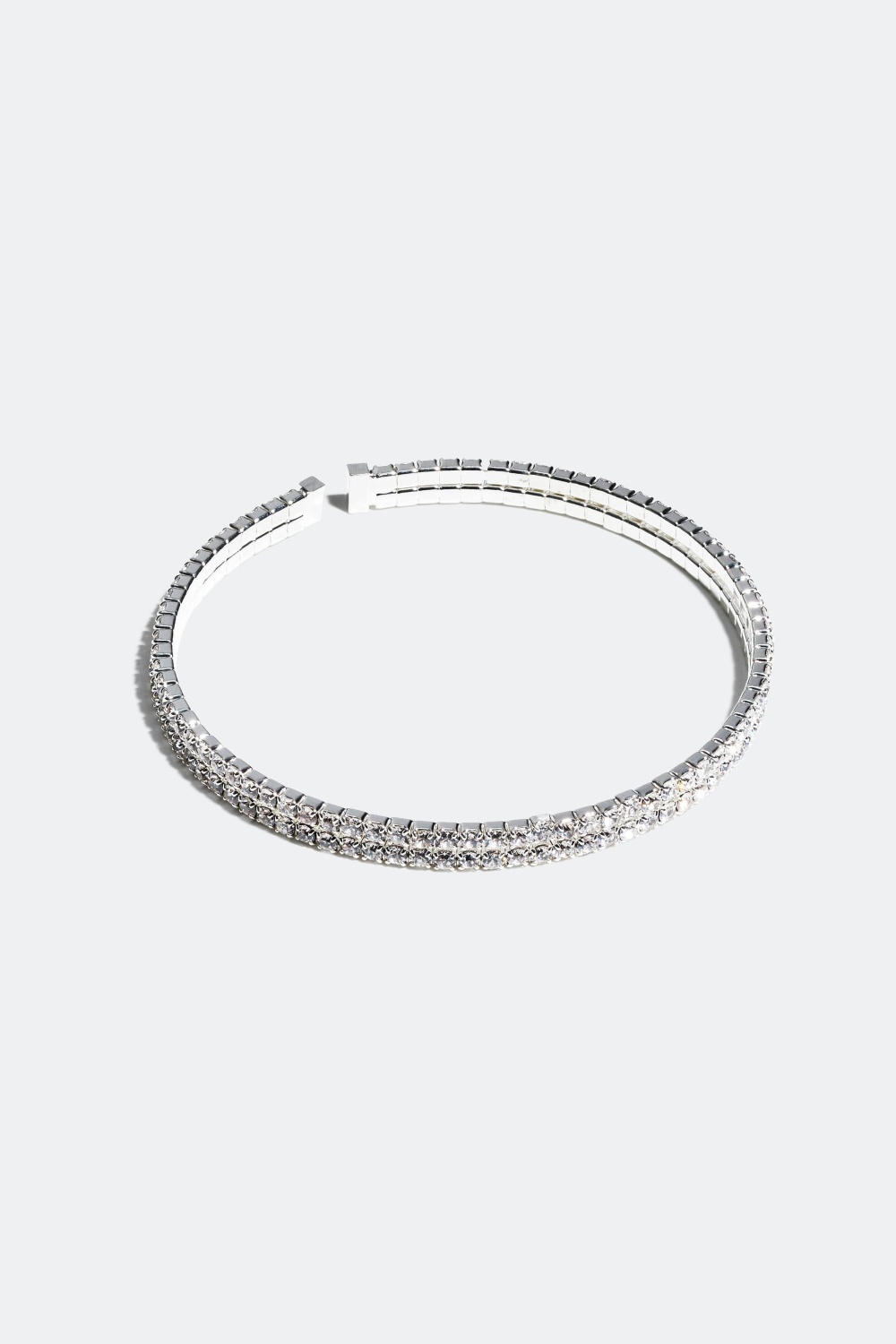 Rannekoru kaksi lasikiviriviä - Metallinen käsikoru koristeena kaksi riviä lasikiviä. Käsikoru on avonainen ja sitä voi taivuttaa ja näin säätää koru sopivaksi omaan ranteeseen.