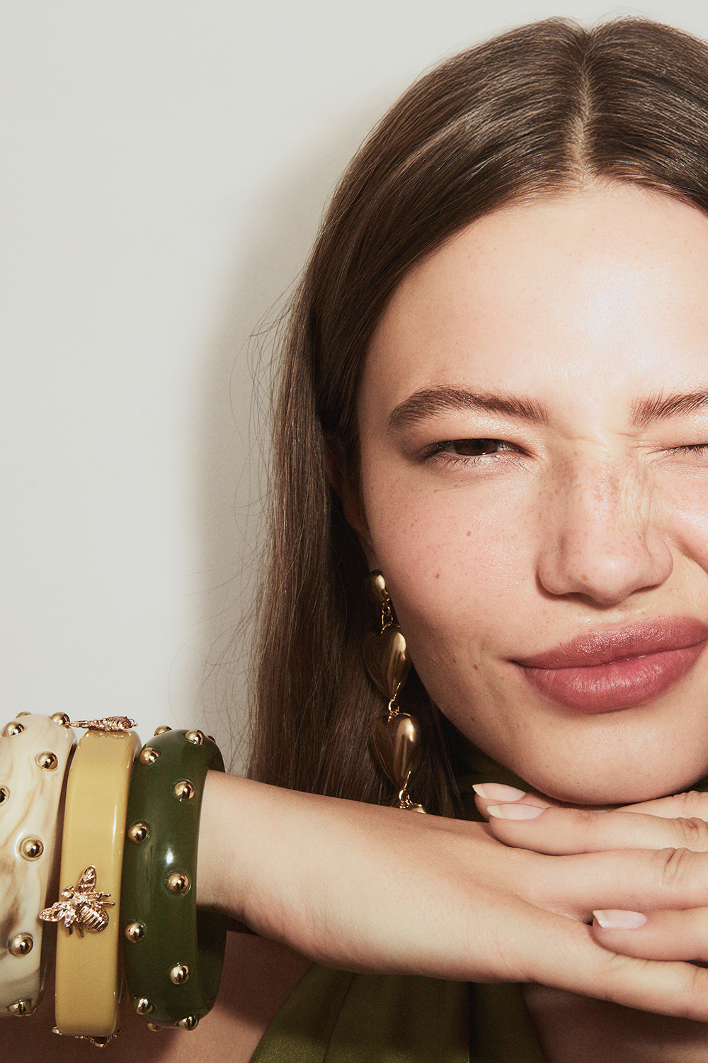 Rannerengas, jossa kullanvärisiä mehiläisiä ryhmässä Korut / Rannekorut / Leveät @ Glitter (251001824000)