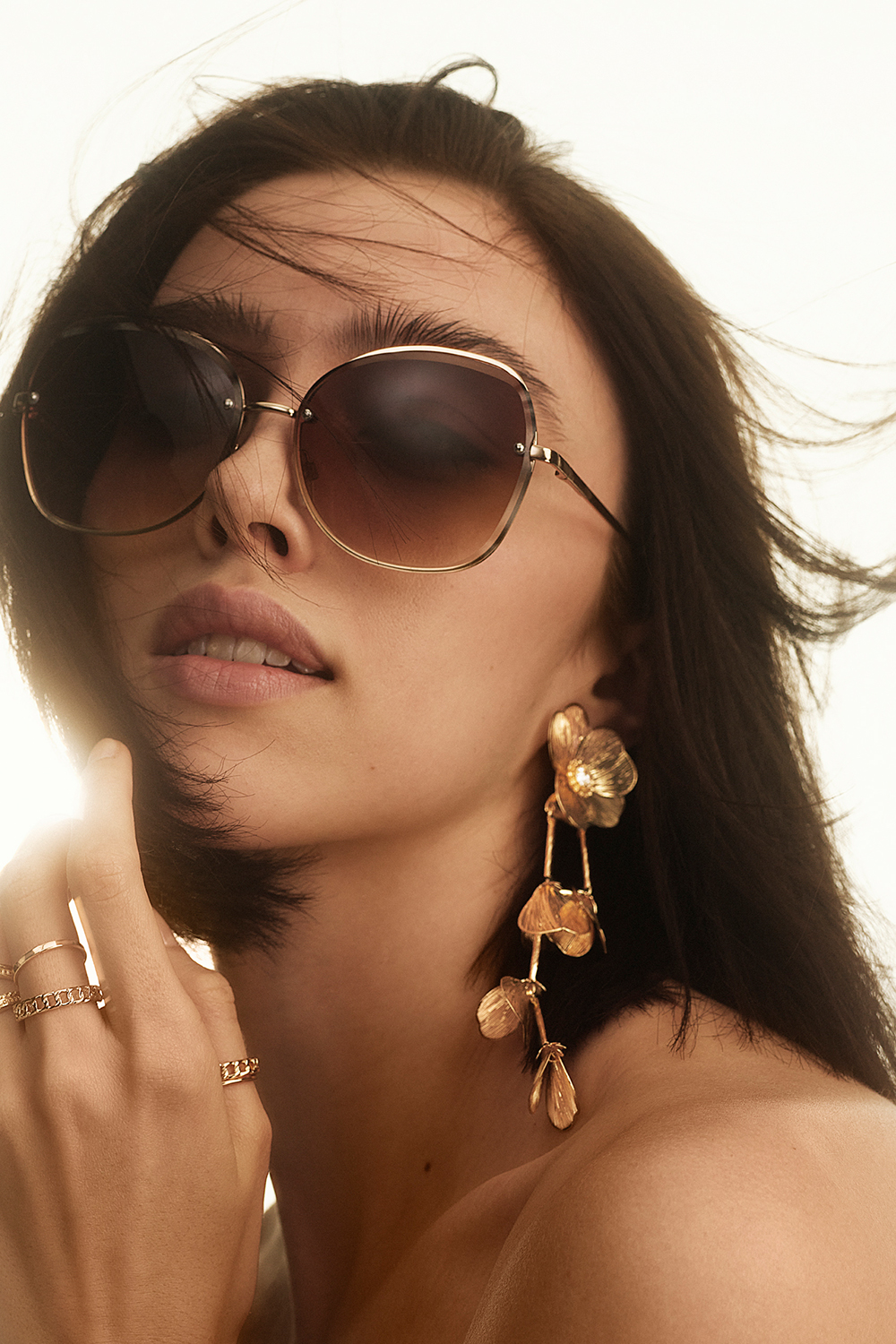 70-luvun tyyliset aurinkolasit, joissa sävytetyt linssit ja metallikehykset. Trendikäs asuste, joka tuo retrotunnelmaa tyyliisi.