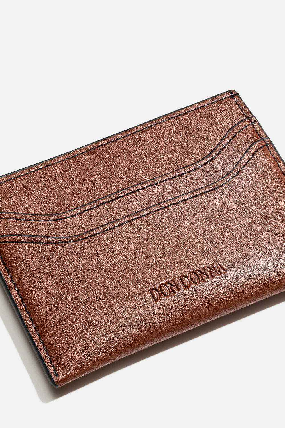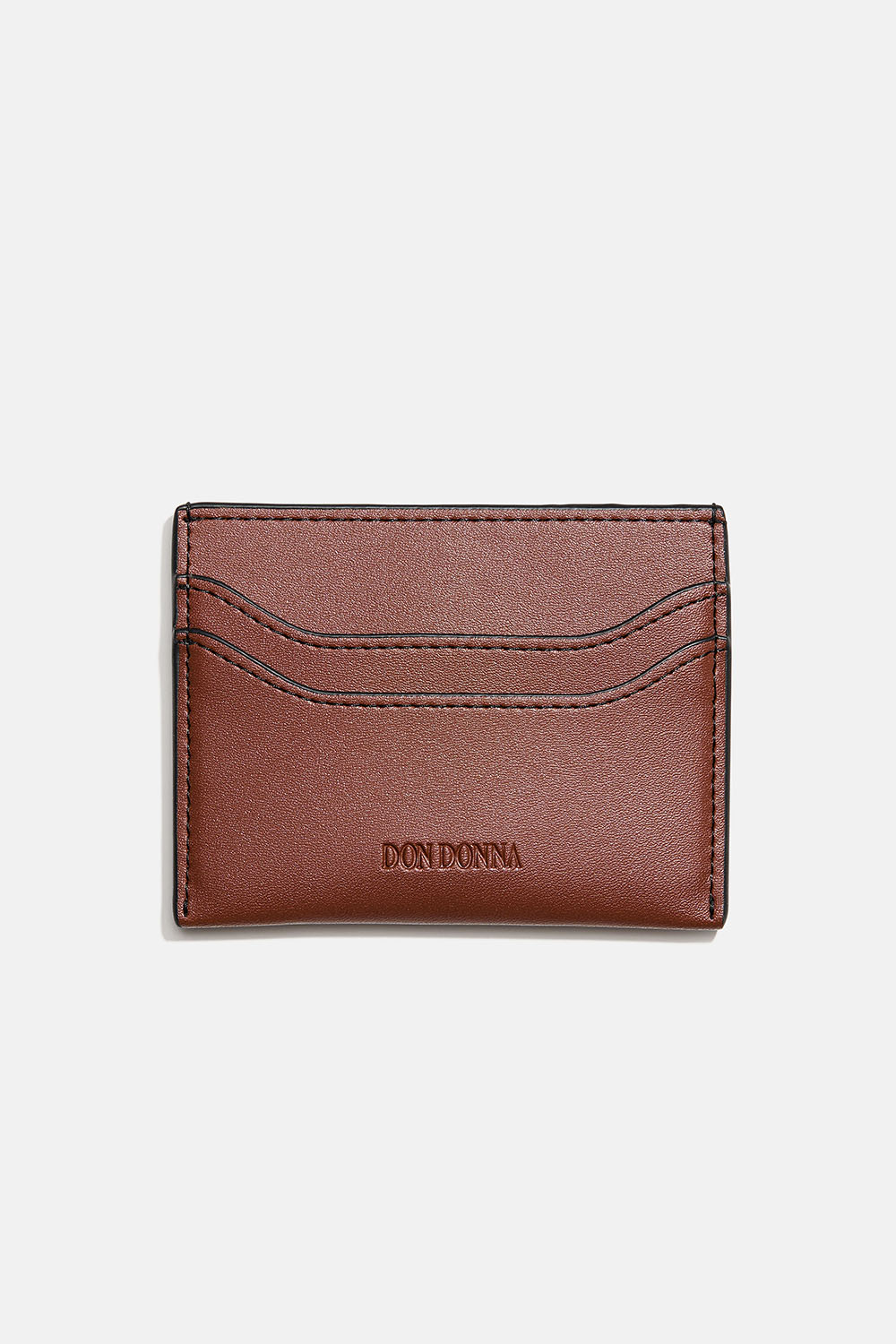 Tyylikäs ruskeasta keinonahasta valmistettu korttikotelo, jonka etuosassa on painettu Don Donna -logo. Käytännöllinen pieni lompakko, jonka molemmilla sivuilla on kaksi taskua ja keskellä hieman suurempi tasku esimerkiksi kortteja tai seteleitä varten. Sopii täydellisesti yhteen Don Donna -laukkujemme kanssa.