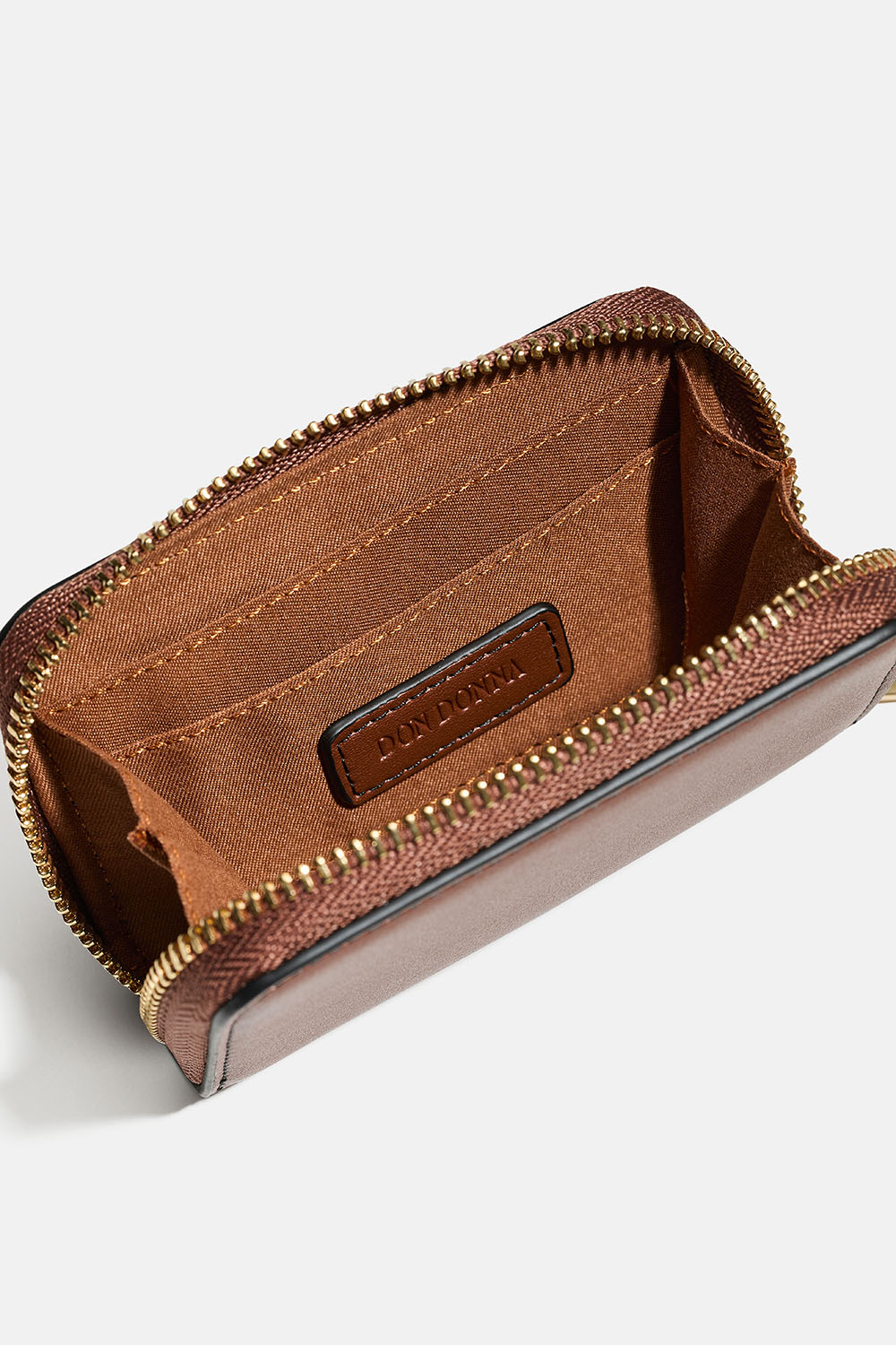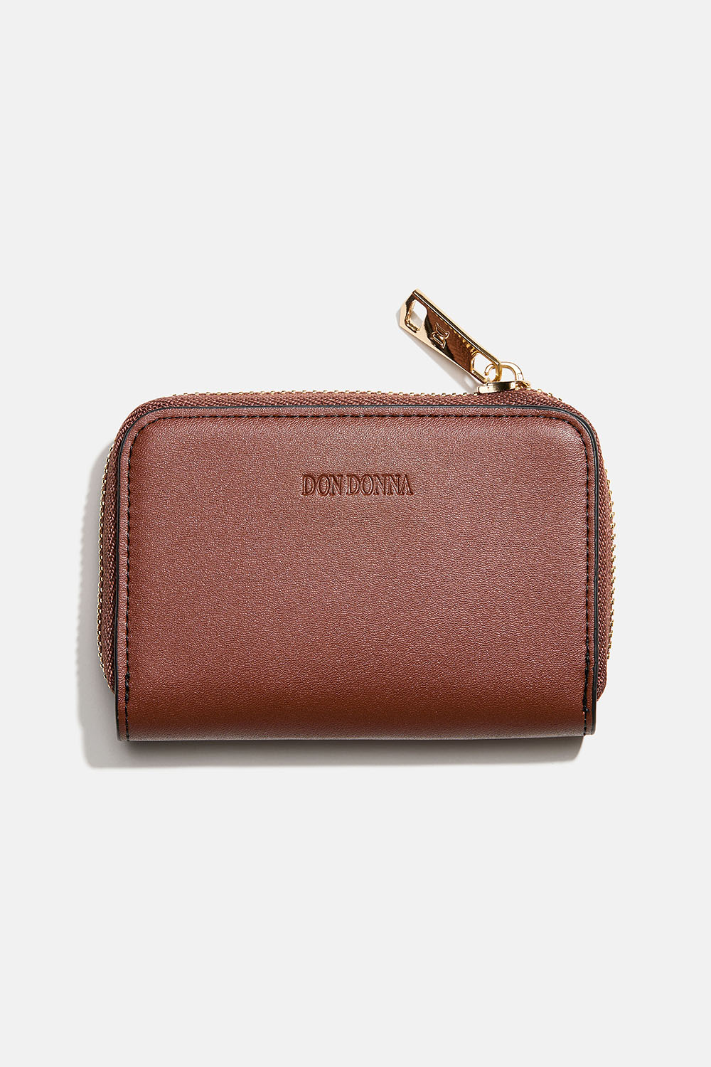 Ruskeasta keinonahasta valmistettu lompakko korteille ja seteleille. Lompakon etupuolella on painettu Don Donna -logo. Käytännöllinen pieni lompakko, jossa on pienet korttitaskut. Lompakko sulkeutuu vetoketjulla, joka pitää korttisi turvallisesti paikoillaan. Tyylikäs lompakko, joka sopii täydellisesti Don Donna -laukkuihimme.