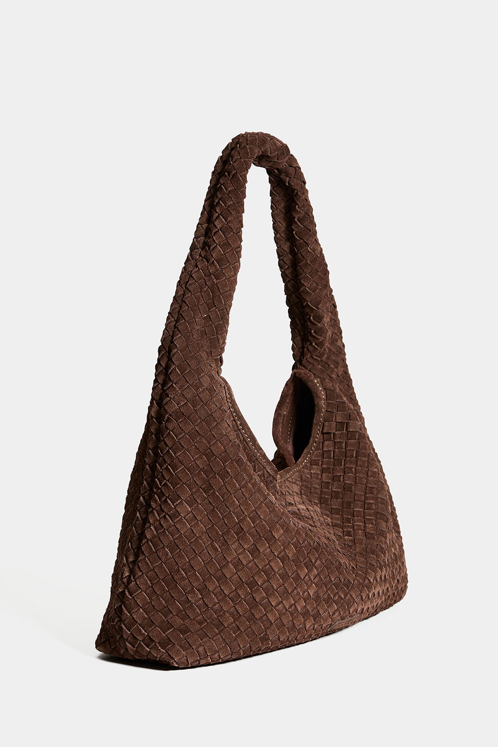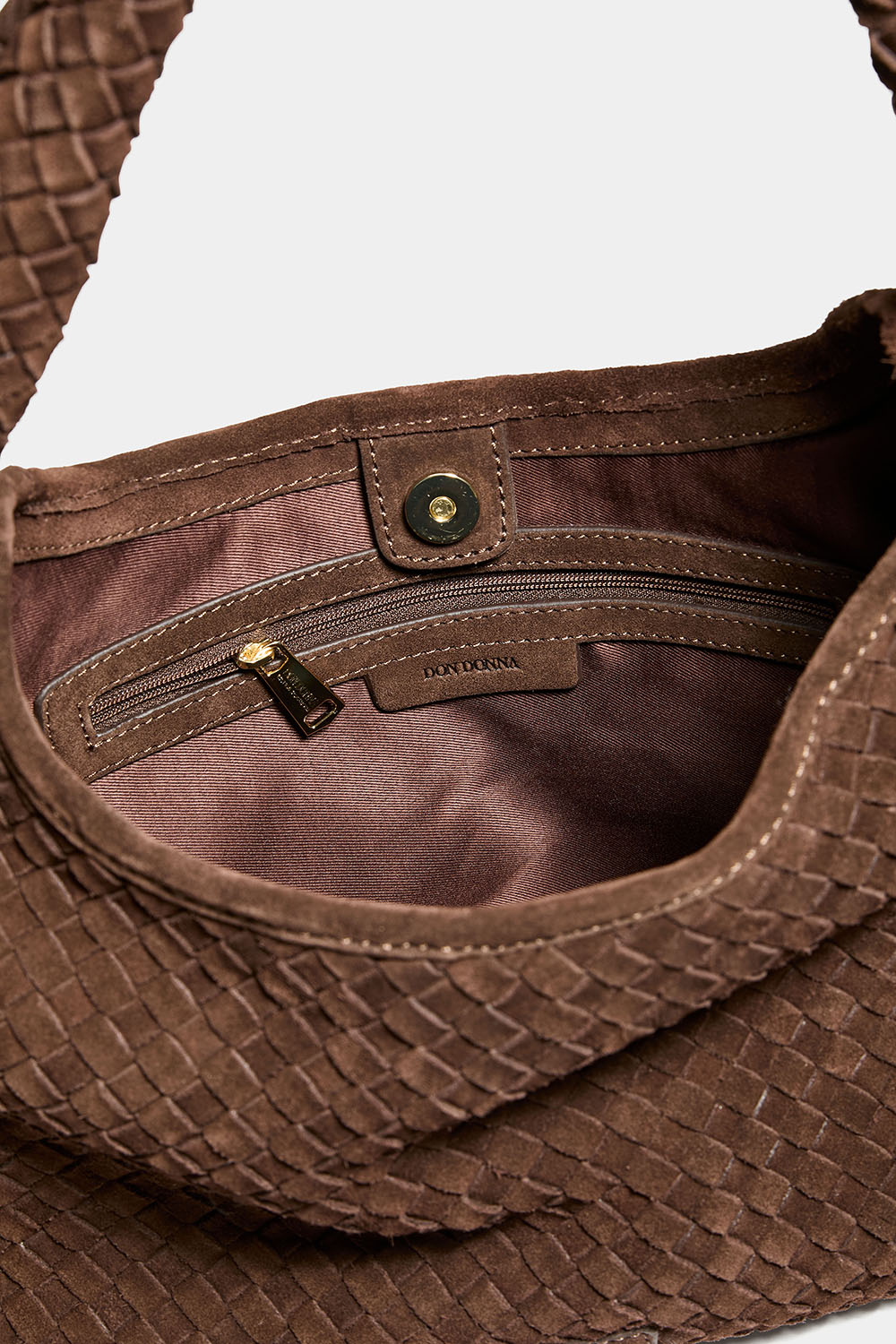 Ruskea mokkalaukku, jossa punottu pinta ryhmässä Don Donna - laukut @ Glitter (172001818200)