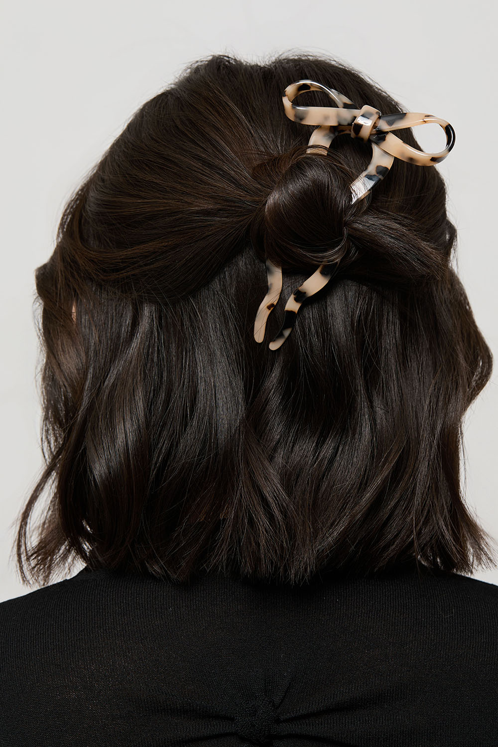 Harmaanruskea ranskalainen hiusneula, jossa on koristeena rusetti.