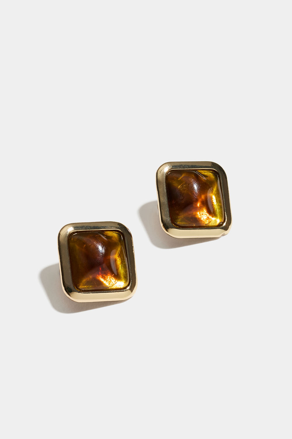 Ruskeaan häivähtävät neliönmuotoiset korvakorut ryhmässä Korut / Korvakorut / Klipsikorvakorut @ Glitter (253009372002)