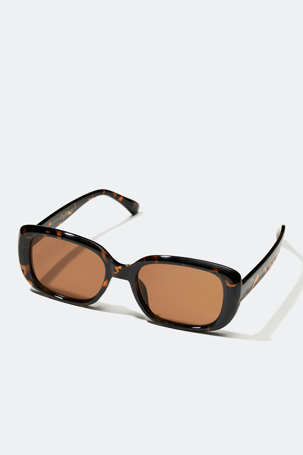 Kilpikonnakuvioiset aurinkolasit neliskulmaisilla kehyksillä, jotka ovat saaneet inspiraationsa 90-luvulta. Aurinkolaseissa on sävytetyt ruskeat linssit ja leveät muovisangat.