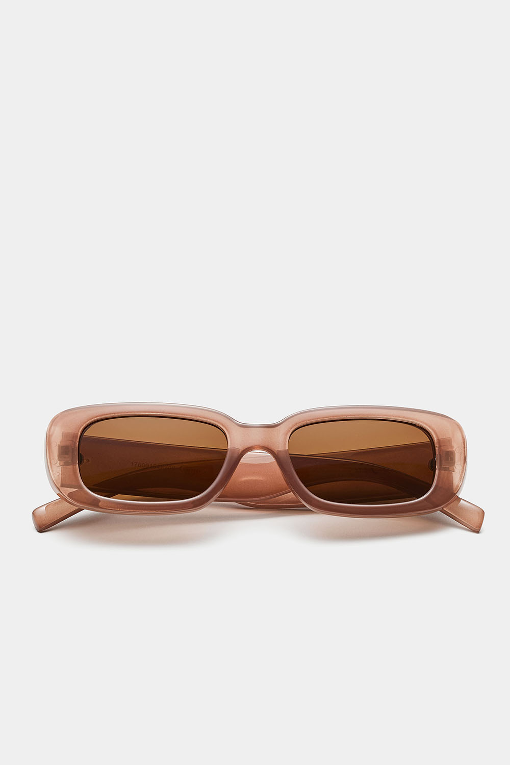 Ruskeat läpinäkyvät suorakulmaiset aurinkolasit, joissa on leveät kehykset ja pyöristetyt reunat.