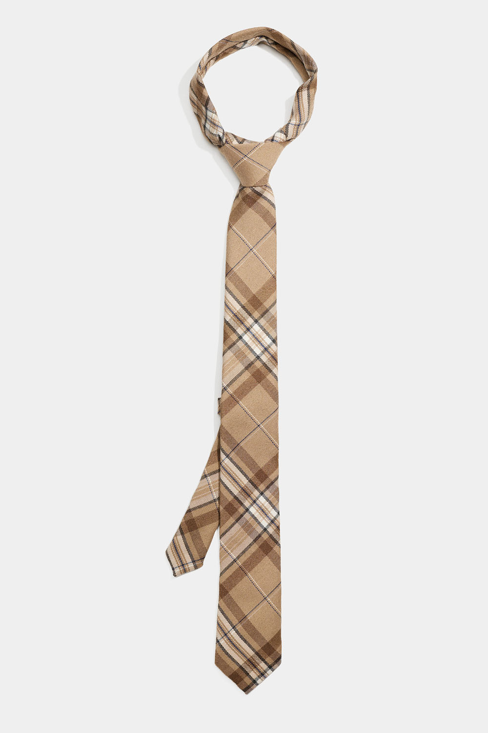 Solmio beigestä ruutukankaasta. Solmio on valmiiksi sidottu ja sen kokoa on helppo säätää.