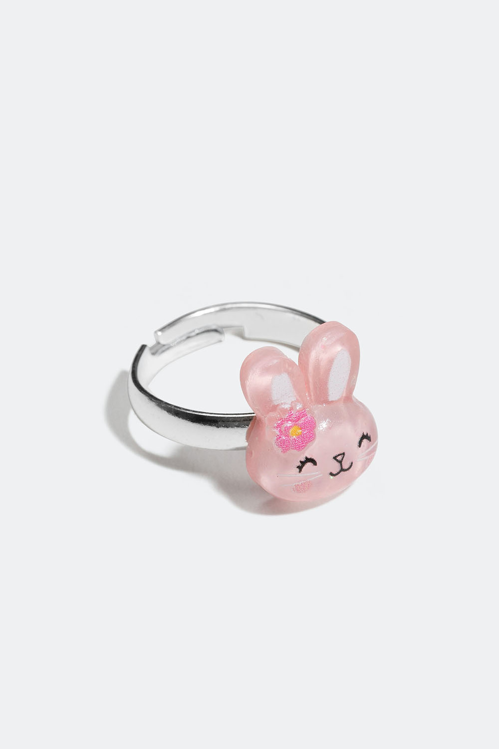 Lasten säädettävä sormus, jossa on vaaleanpunainen kani.