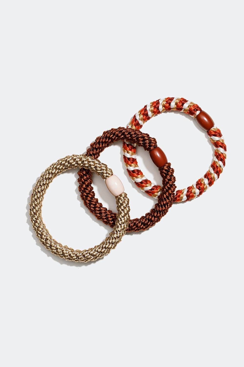 Sekoitus ruskeita ja beigejä punottuja hiuslenkkejä, 3 kpl ryhmässä Hiustuotteet / Hiuslenkit / Monipakkaus @ Glitter (332000424600)