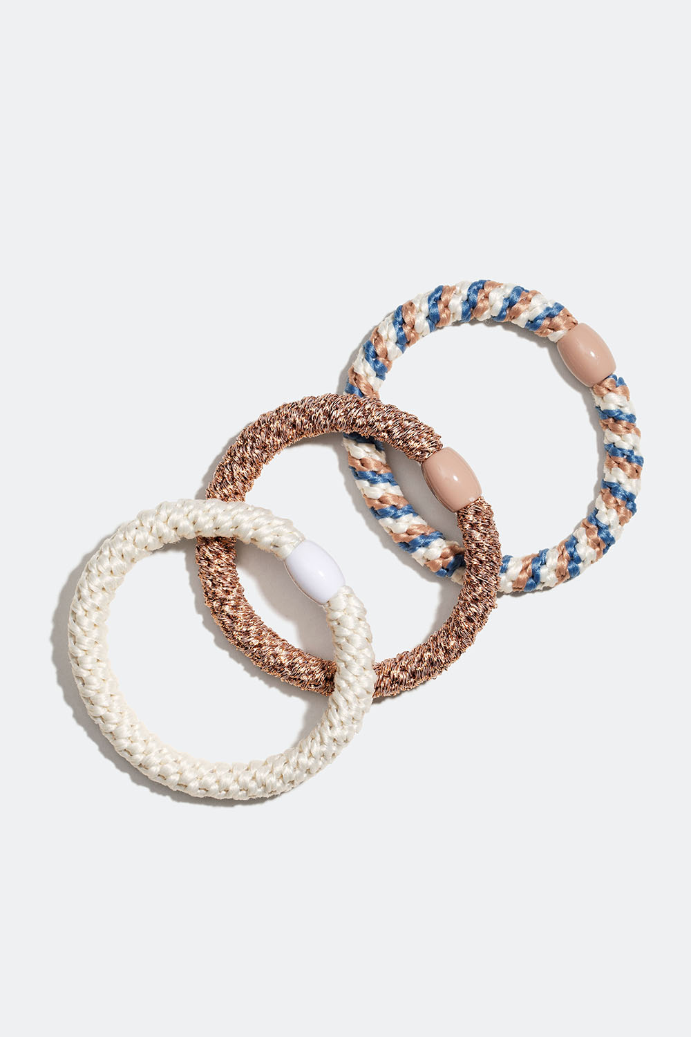 Sekoitus valkoisia, beigejä ja sinisiä punottuja hiuslenkkejä, 3 kpl ryhmässä Hiustuotteet / Hiuslenkit / Monipakkaus @ Glitter (332000423401)