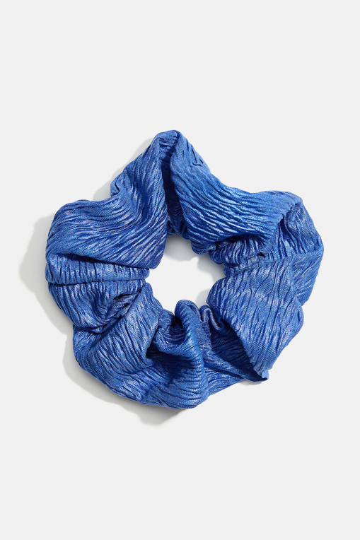Sininen hiusdonitsi kiiltävästä pliseeratusta kankaasta.