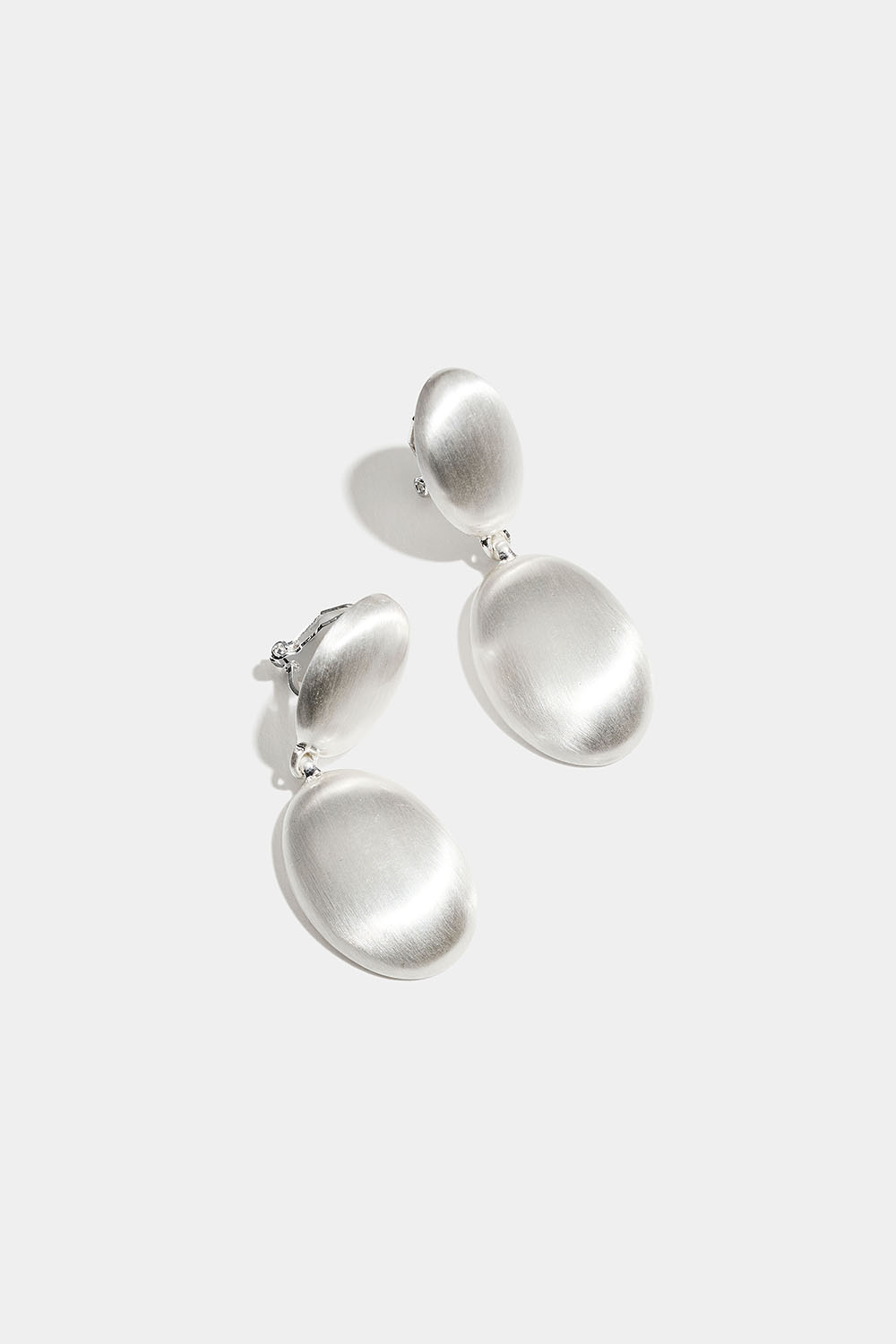 Metalliset klipsikorvakorut, joissa on soikea muotoilu, matta ja harjattu pinta. Tyylikkäät korvakorut, jotka sopivat täydellisesti niille, joilla ei ole reikiä korvissa.