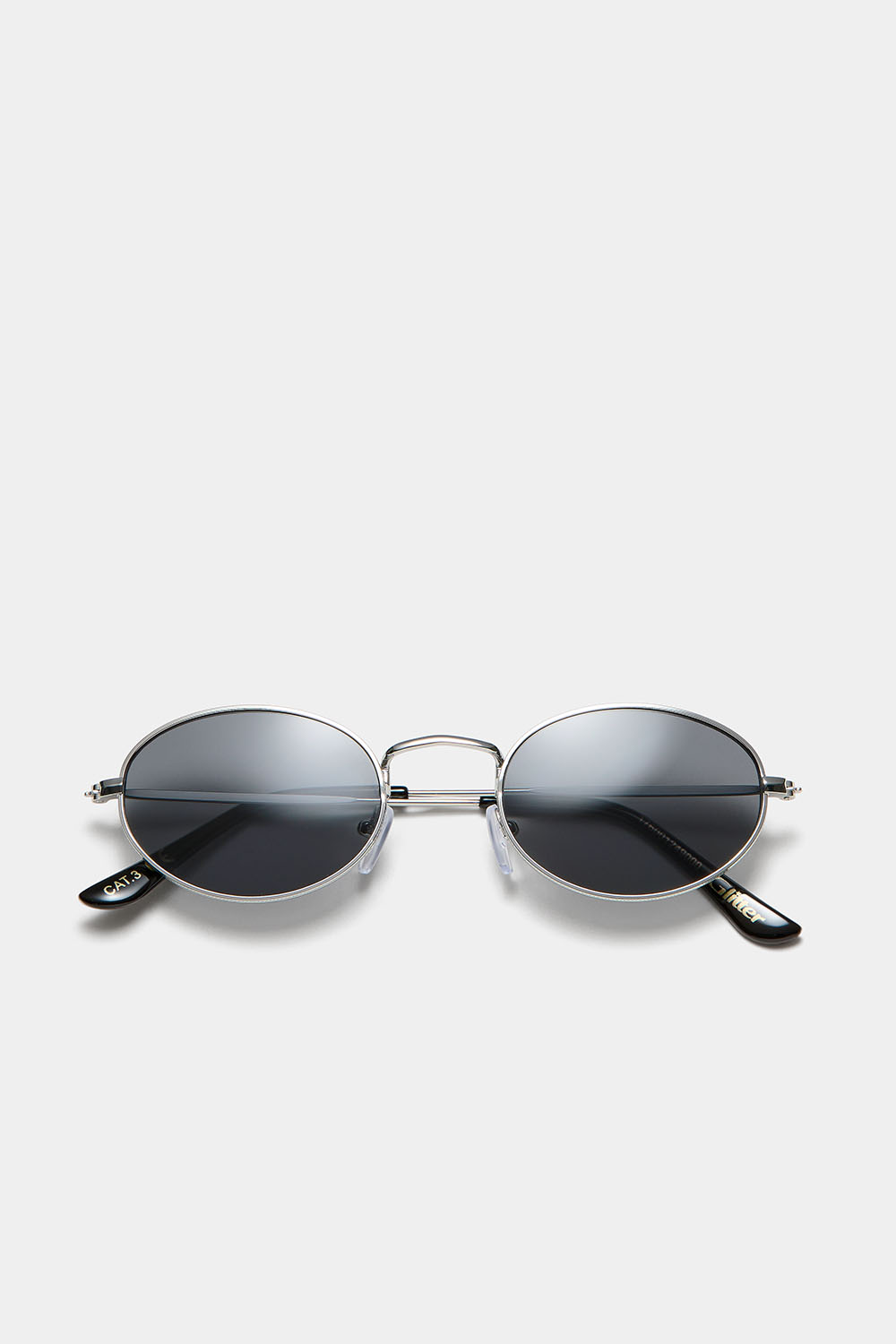 Tyylikkäät, minimalistiset mustat aurinkolasit, joissa on soikeat ohuet hopeanväriset metallikehykset. Lasit istuvat mukavasti säädettävien nenätyynyjen ja pehmustettujen sanganpäiden ansiosta. Tyylikäs klassikkopari, josta tulee nopeasti suosikki.
