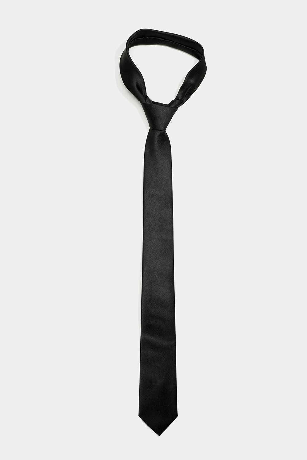 Musta solmio puolikiiltävästä kankaasta. Solmio on valmiiksi sidottu ja sen kokoa on helppo säätää.