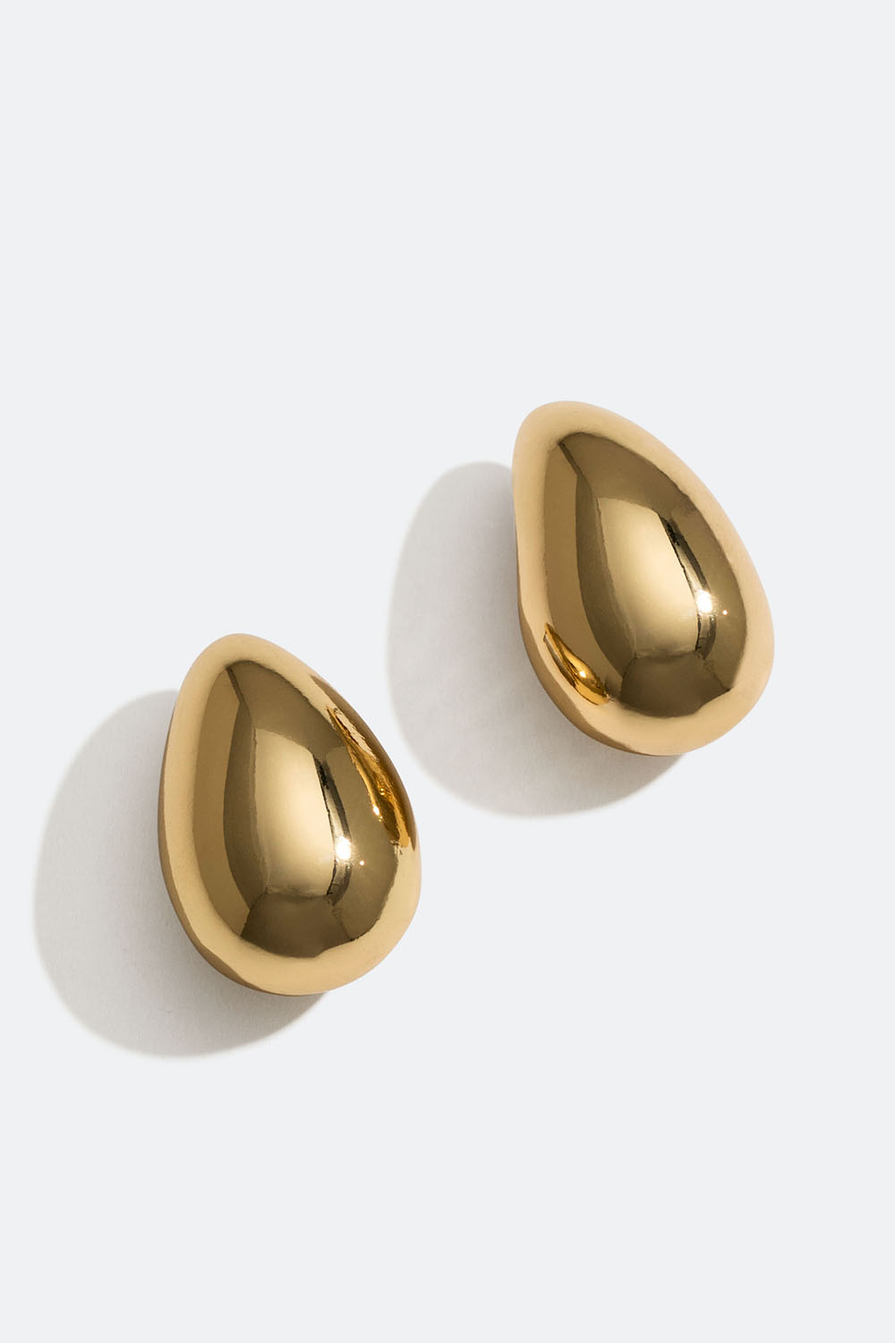Suuret pisaranmuotoiset korvakorut sileästä, kullanvärisestä metallista. Pari tyylikkäitä korvakoruja, joissa yhdistyvät täydellisesti moderni ja ajaton muotoilu.