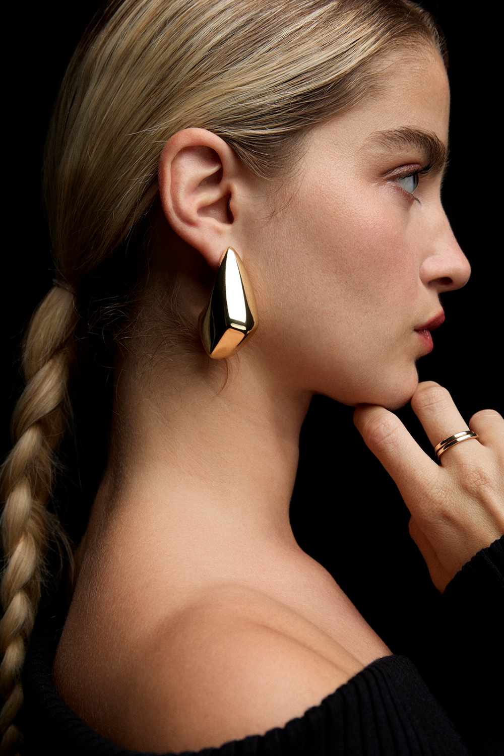 Suuret, kulmikkaiden pisaroiden muotoiset, kiiltävät kullanväriset korvakorut
