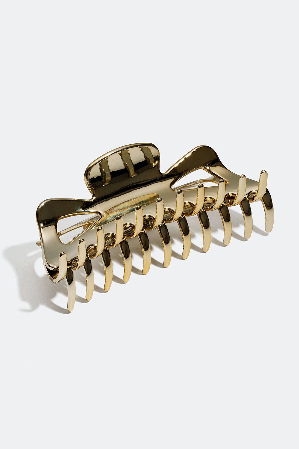 Hiusklipsi on klassinen, suurehko design, joka sopii tuuheampien hiusten kampauksiin. Hiusklipsi on saatavana metallisena kullanvärisenä, ja se lisää kampaukseesi jotain ekstraa ja sopii täydellisesti nopeaan ja hellään kampaukseen.