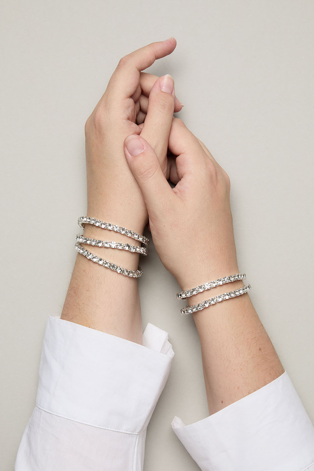 Joustavat rannekorut koristeltuina pyöreillä strassikivillä. Viiden kappaleen pakkaus.