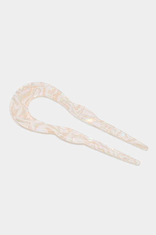 Hohtavan beige, u-muotoinen ranskalainen hartsista valmistettu hiusneula.
