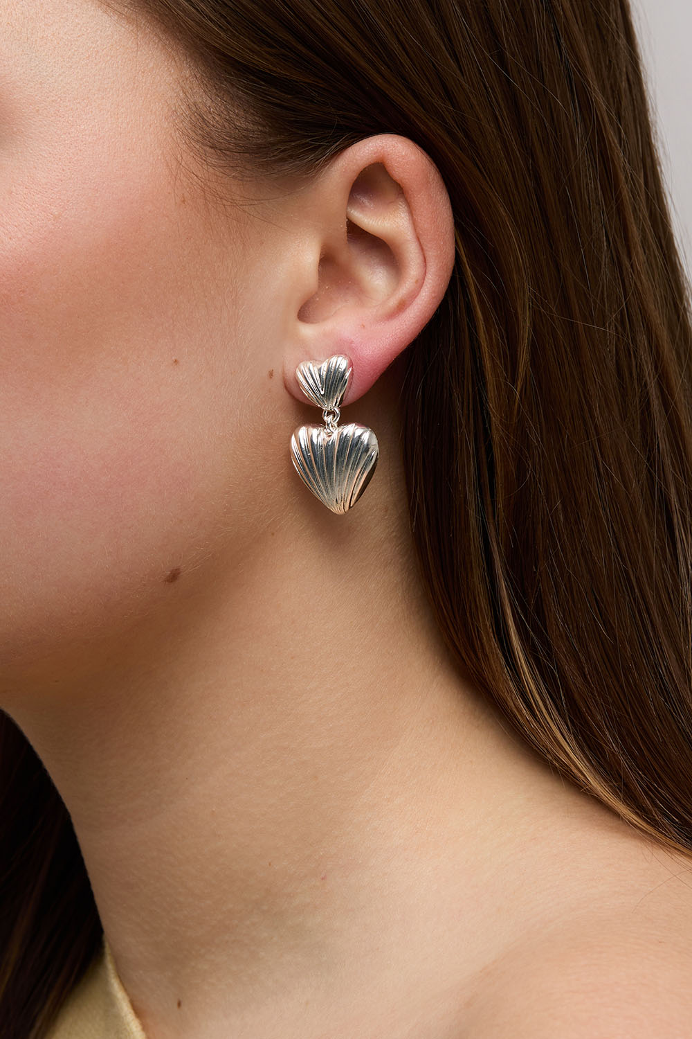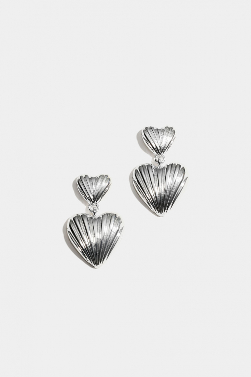 Uurretut metallikorvakorut, joissa on kaksi sydäntä.