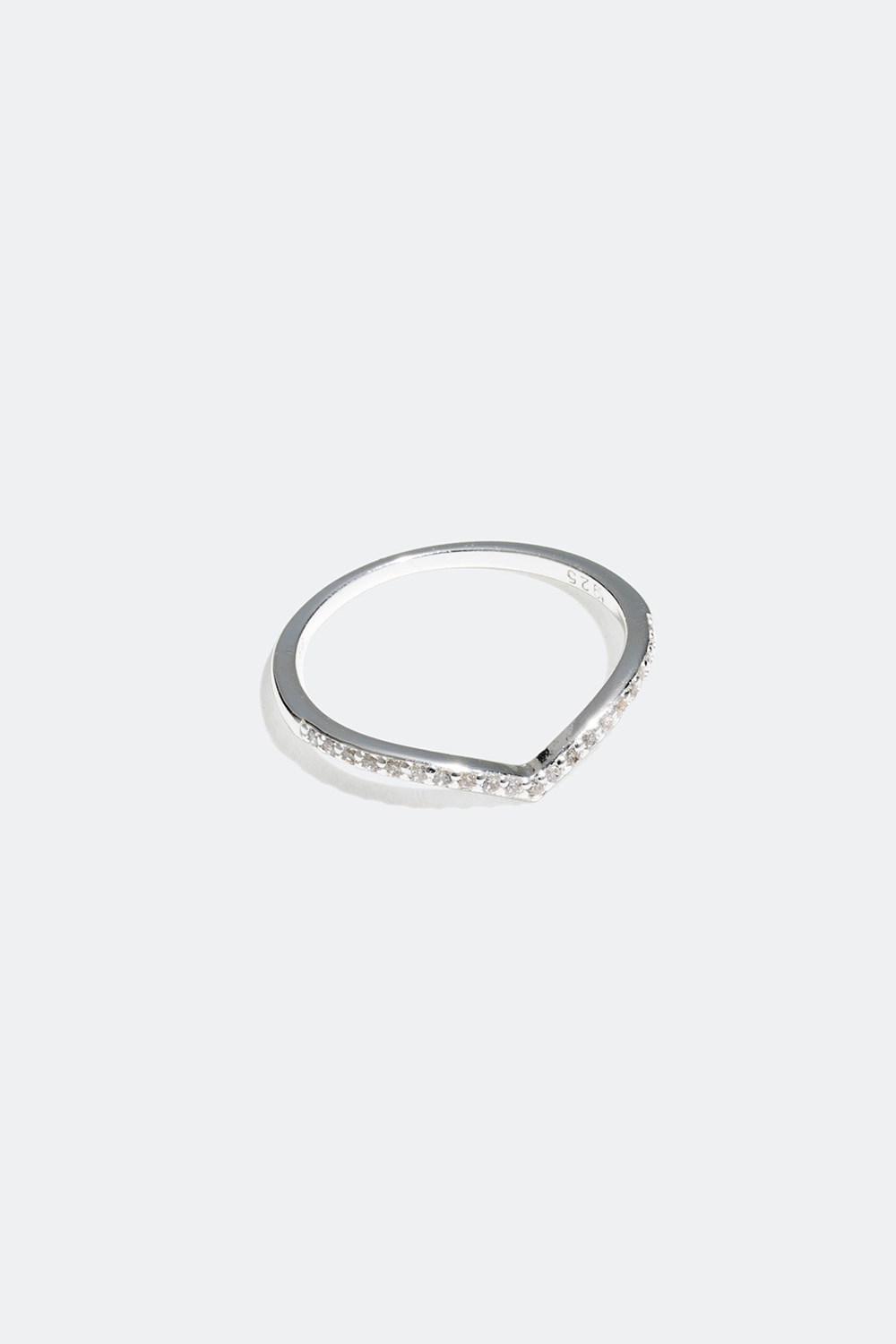 Ohut, v-muotoinen aito hopeasormus, jossa Cubic Zirconia -kiviä.