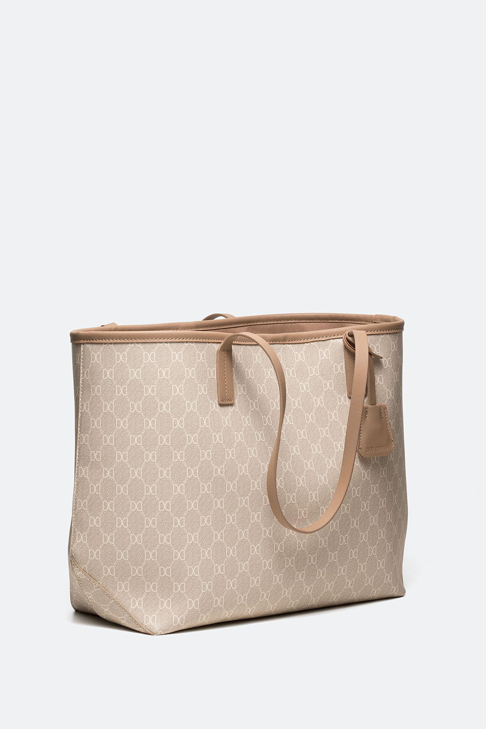 Suuri vaaleanbeige kangaskassi painetulla Don Donna -logolla. Tyylikäs, kapeilla kahvoilla varustettu käsilaukku, jossa yhdistyvät muoti ja toimivuus. Laukussa on avaimenperä, yksi iso tasku ja kaksi pienempää sisätaskua. Täydellinen arkilaukku ja asuste työhön sekä kouluun. Runsaasti tilaa ja älykkäitä säilytysratkaisuja.