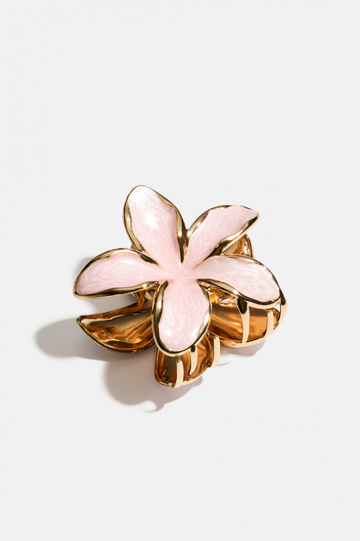 Vaaleanpunainen, kukan muotoinen hiusklipsi kullanvärisestä metallista ryhmässä Hiustuotteet / Hiuspinnit ja -klipsit / Hiusklipsit @ Glitter (331002035100)
