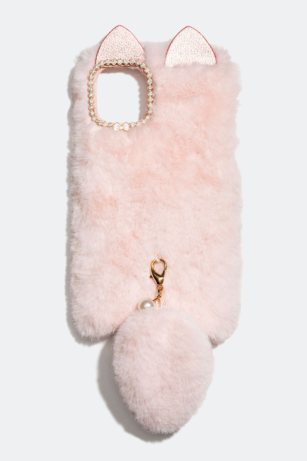Vaaleanpunainen pörröinen matkapuhelinkotelo, jossa korvat ja häntä, iPhone 11/XR ryhmässä Asusteet / Matkapuhelintarvikkeet / Matkapuhelinkotelot / iPhone 11 / XR @ Glitter (174000385111)