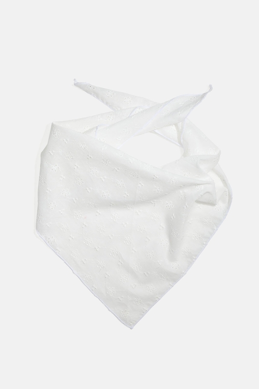 Kolmion muotoinen huivi brodeerattua anglaise-pitsiä. Kevyt kangas, jossa on kirjottuja kukkia. Voidaan käyttää monella tavalla, kaulan ympärillä, hiuspantana tai vyötäröllä.