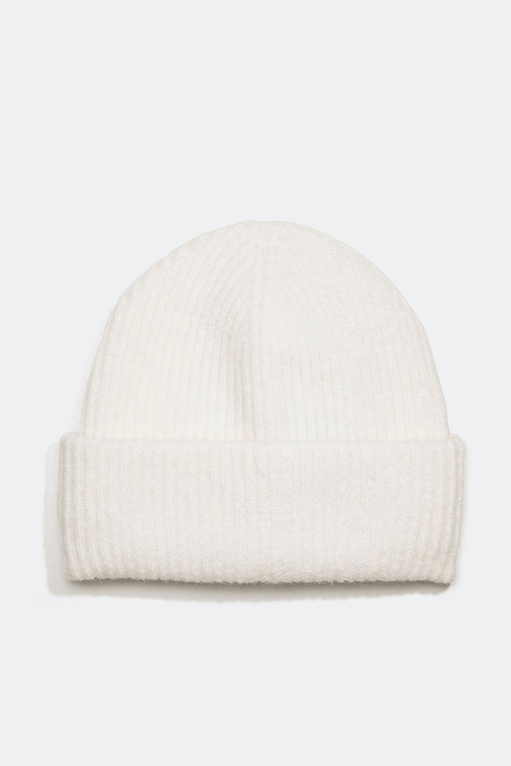 Valkoinen joustinneulepipo käännetyllä reunalla pitää sinut lämpimänä. Tyylikäs asuste, joka sopii moniin sesonkeihin sekä kylmempiin päiviin.