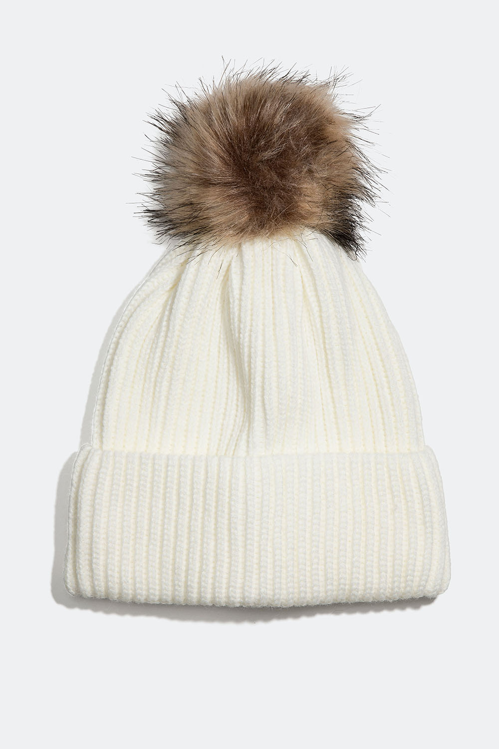 Valkoinen joustinneulottu pipo, jossa on tupsu ryhmässä Asusteet / Neuleet / Pipot @ Glitter (171000863100)