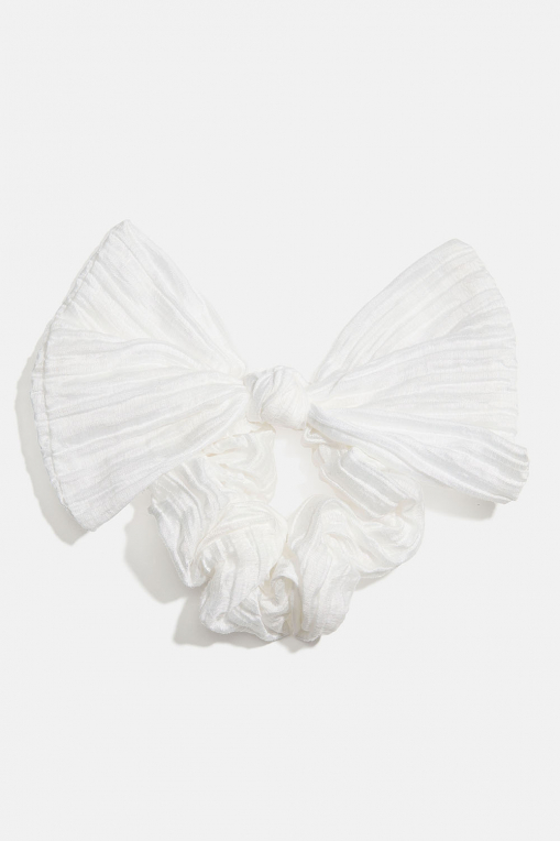 Valkoinen pliseerattu hiusdonitsi, jossa rusetti ryhmässä Hiustuotteet / Scrunchie-hiusdonitsit @ Glitter (332002093000)